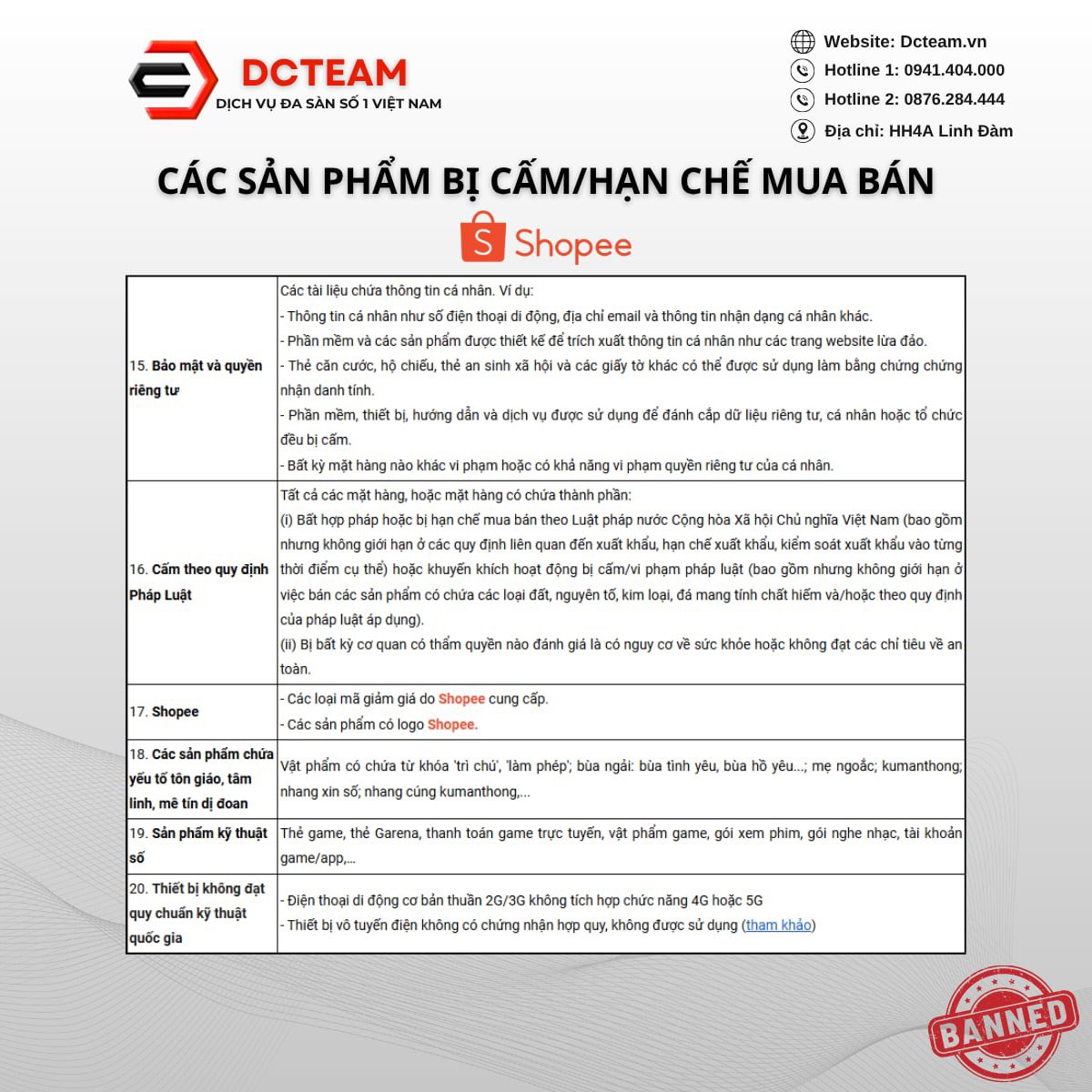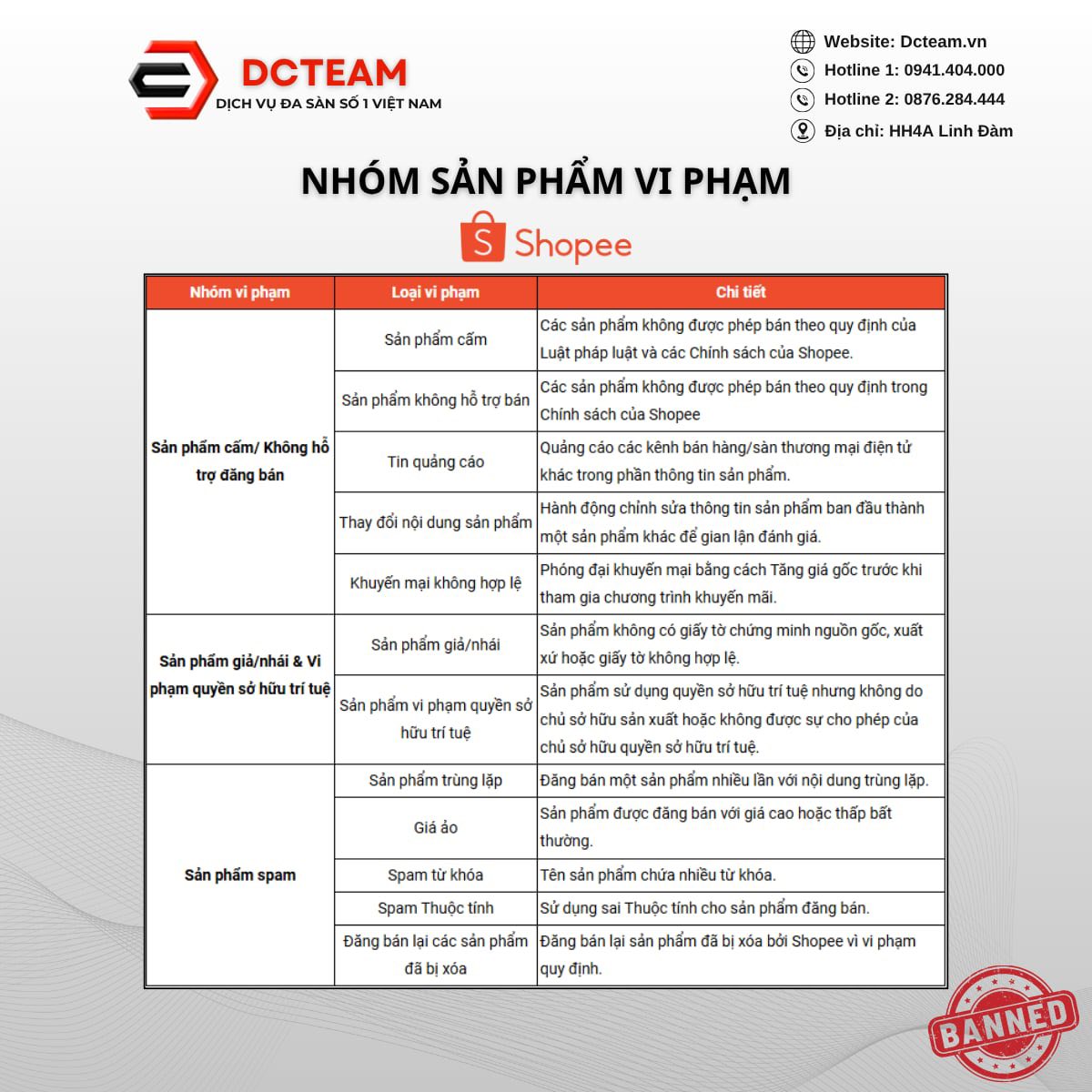 Đăng sai sản phẩm trên Shopee, Lazada, TikTok Shop có thể khiến shop bạn bị khóa tài khoản, giảm hiển thị. Xem ngay cách rà soát và tối ưu đúng chuẩn cùng DCTeam.
