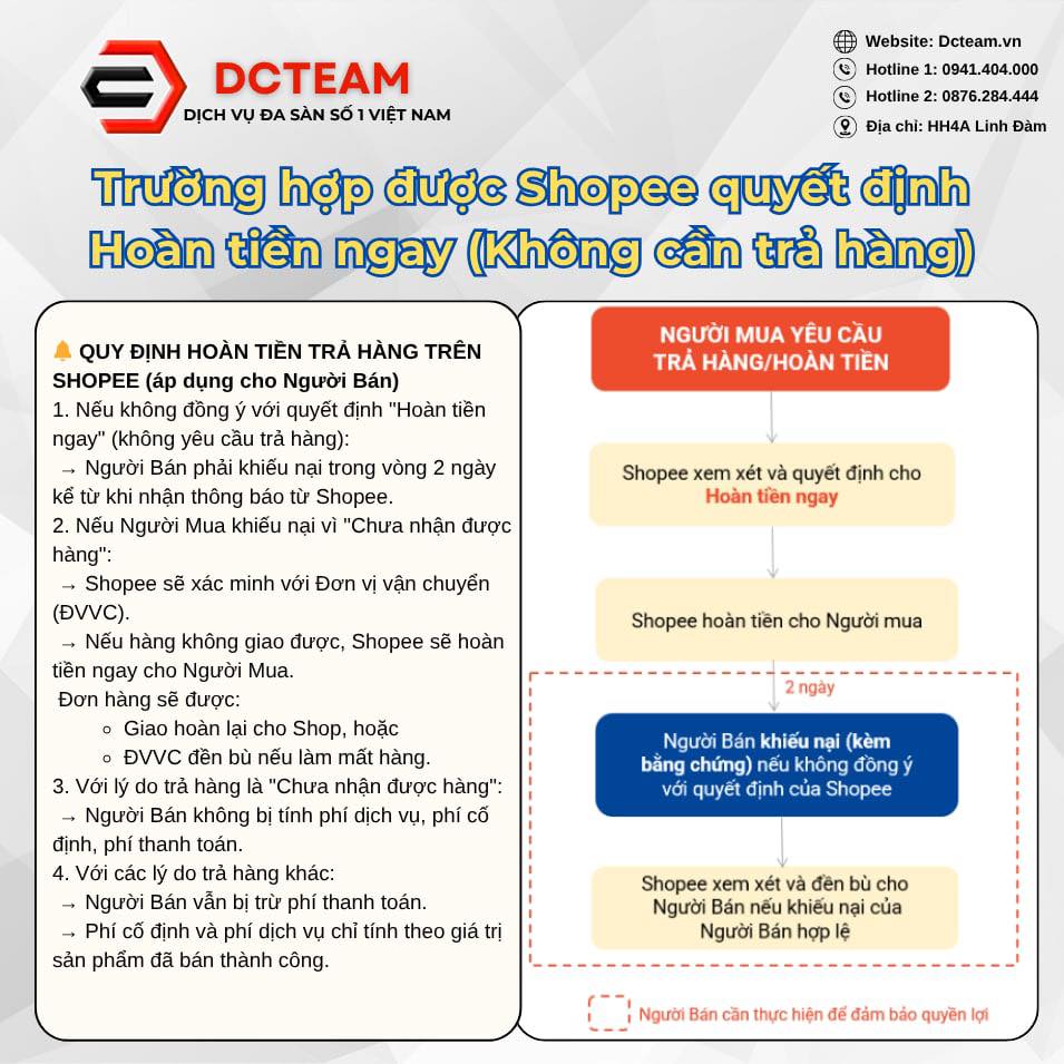 Shopee hoàn tiền mà không trả hàng? Nếu bạn không khiếu nại đúng hạn hoặc thiếu bằng chứng, shop có thể mất trắng. Xem ngay hướng dẫn xử lý từ DCTeam.